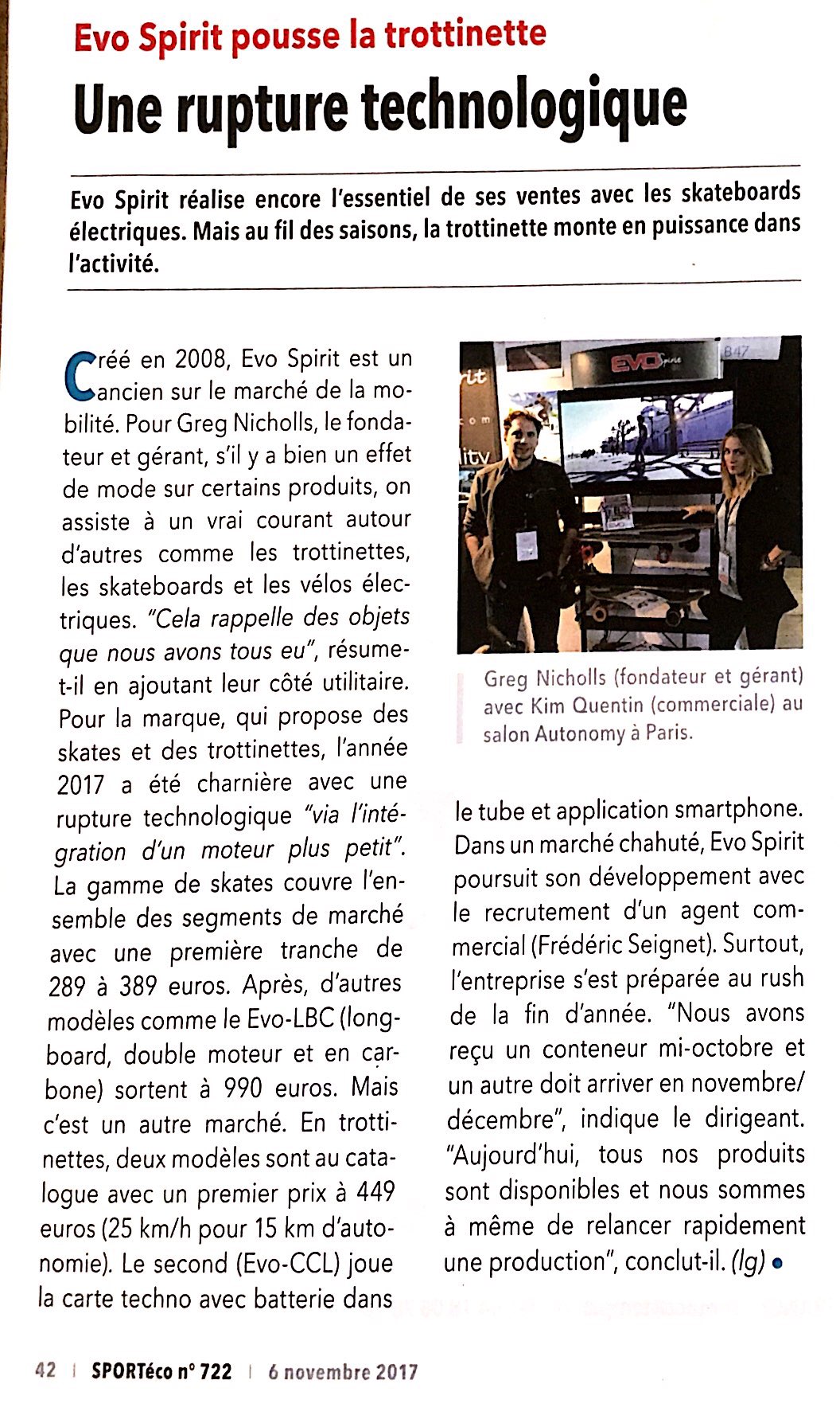 L’article revient aussi sur notre gamme de skates et trottinettes, ainsi que notre croissance continue sur le marché de la mobilité électrique.