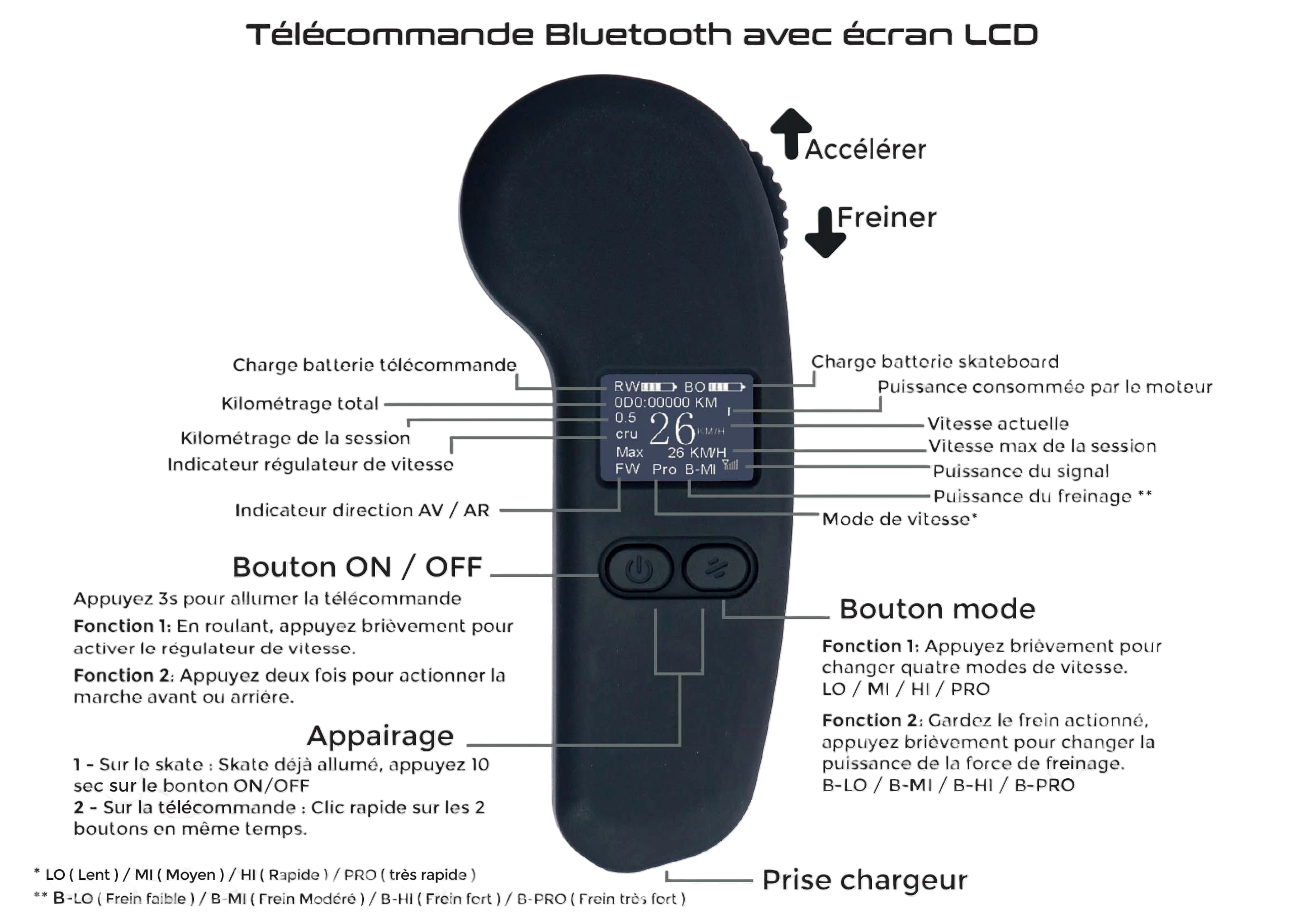 Deux versions de télécommande sont proposées pour correspondre à la configuration de votre skate électrique :